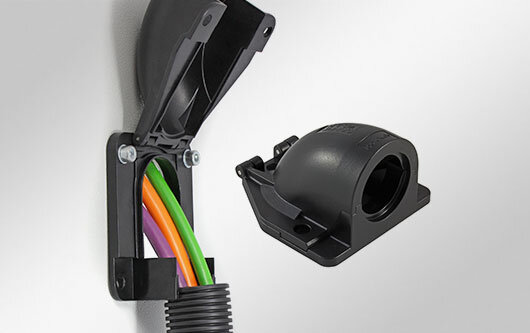 Spole?nost icotek navíc nabízí dělené kabelové chráni?ky CONFiX? WST, které jsou navr?eny pro konfekcionované kabely v drsném prost?edí. Dr?áky kabelovych chráni?ek CONFiX? SH pro rychlou montá? dělenych kabelovych chráni?ek doplňují sortiment.