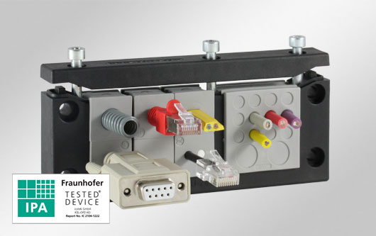 所有適用潔凈室的易科智連電纜引入系統(tǒng)都通過(guò)了弗勞恩霍夫 IPA 測(cè)試和認(rèn)證,并符合 ISO 14644-1 的 1 級(jí)認(rèn)證 !