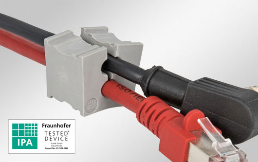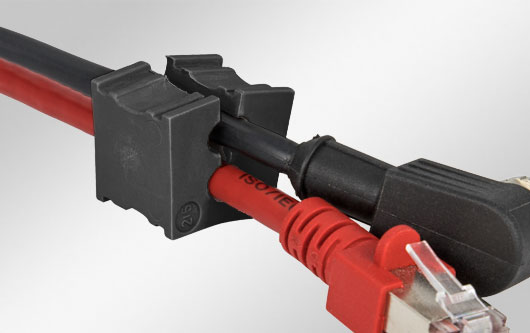 可分式 U 形電纜穿芯,適用于帶或不帶連接器的電纜(線徑范圍為 4 - 11 mm)。 免工具安裝。