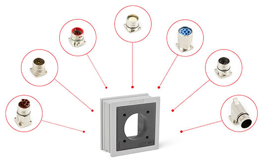 通過(guò)使用AT-K-Z適配穿芯,可以將好幾個(gè)連接器直接嵌入電纜引入框架中。
